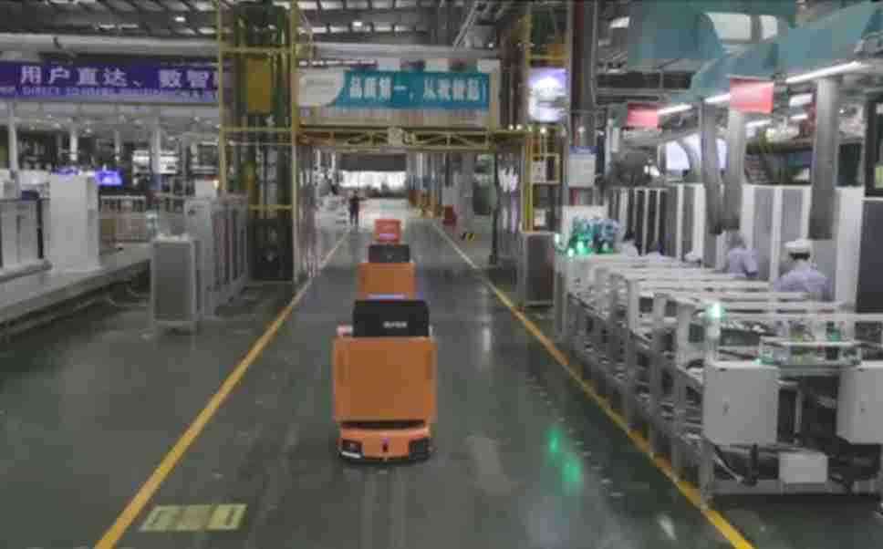 为车载冰箱物流配送打造的智能解决方案,,,,包含产中物流通过潜伏举升AMR搬运至线边,,产后成品物流智能仓储,,,,流程包含产中物流智能齐套入库,,,,线边安灯叫料AMR智能配送至线边,,,成品入库、、、出库,,通过无人堆高车机器人,,,,智能仓储管理替代人工作业管理,,,,实现更高存储、、、更高效率、、、更具柔性化的解决方案。。